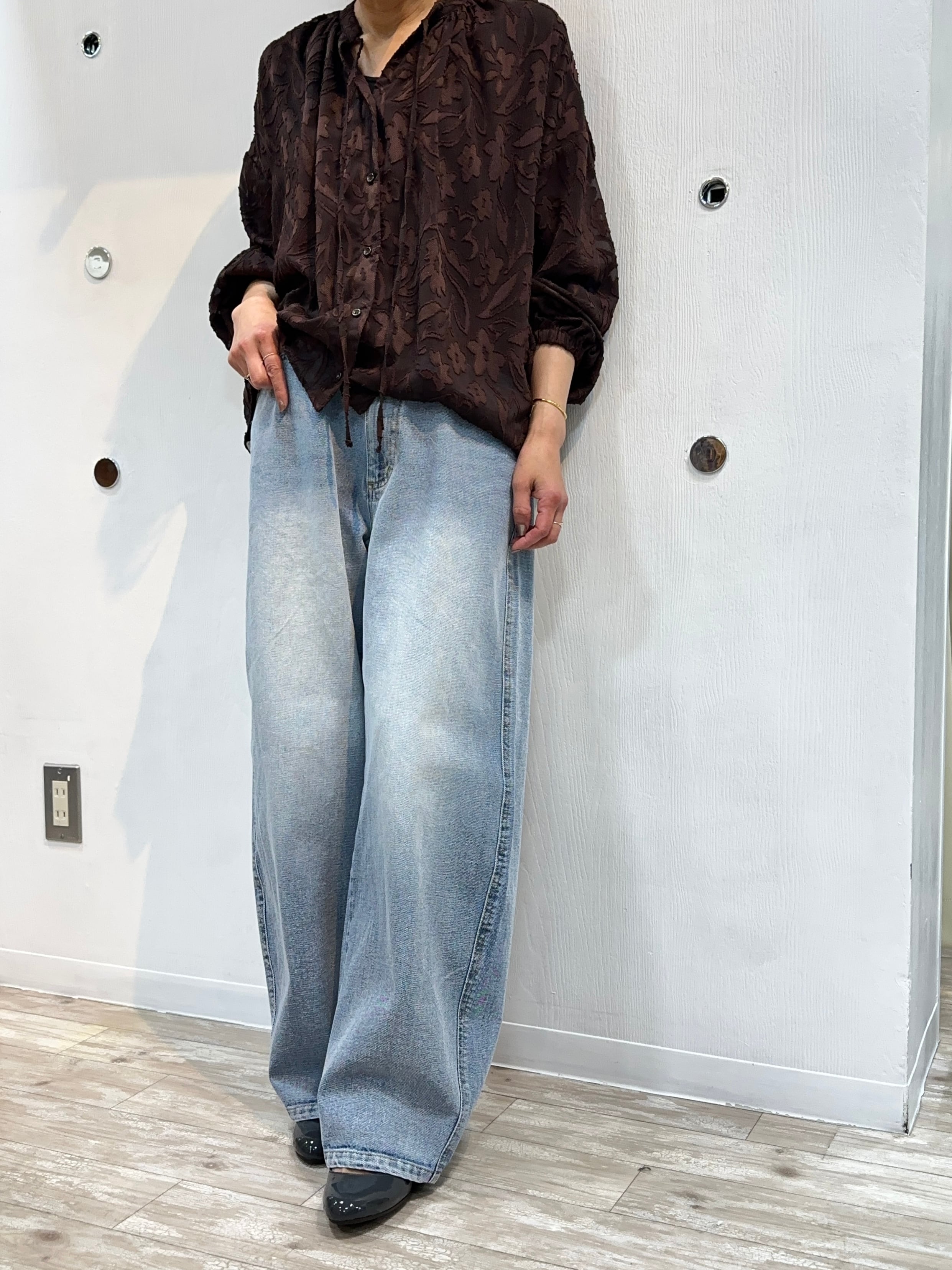 トップスは、レースやブラウス等の女性らしいトップス合わせもおススメです。