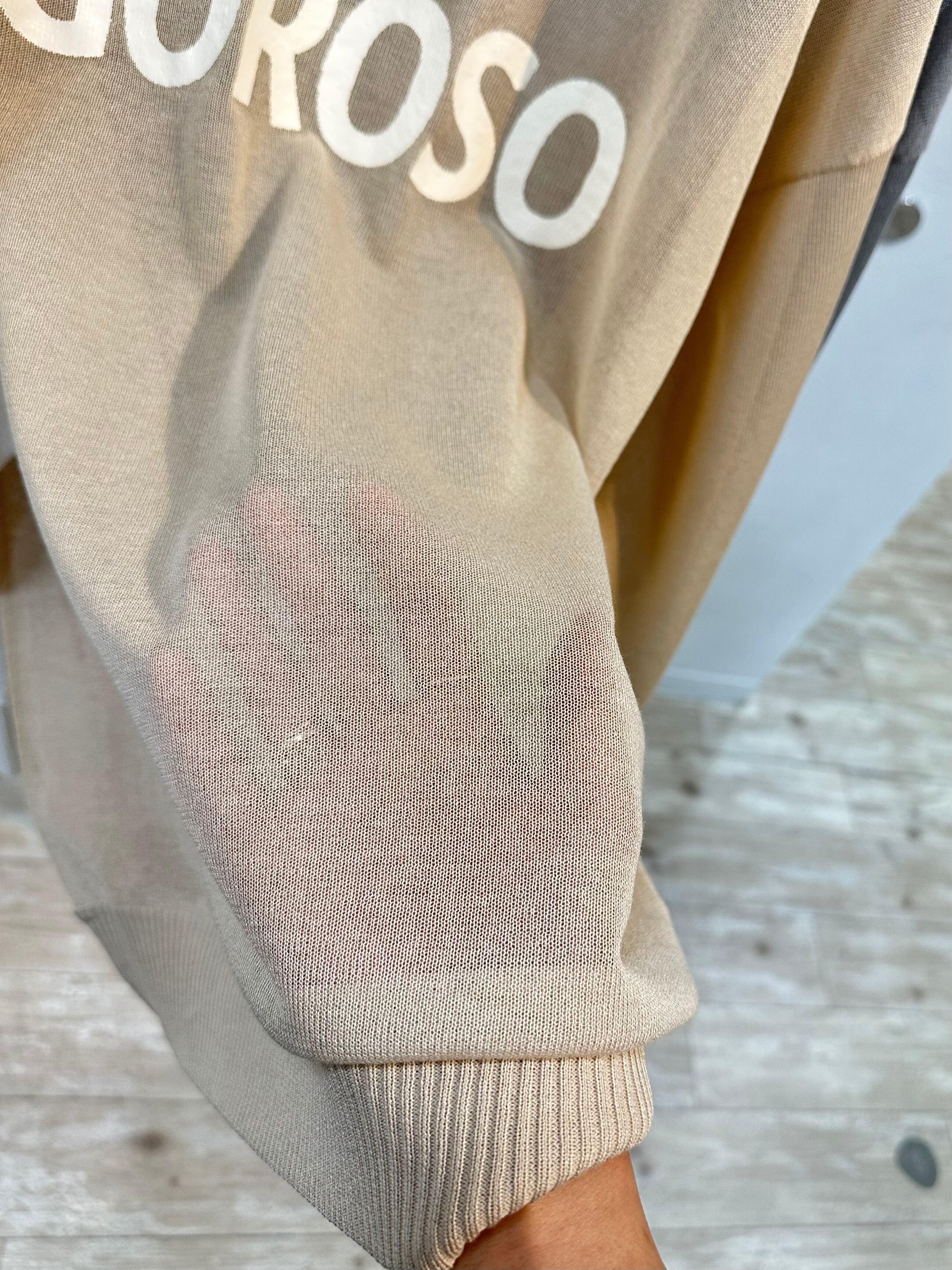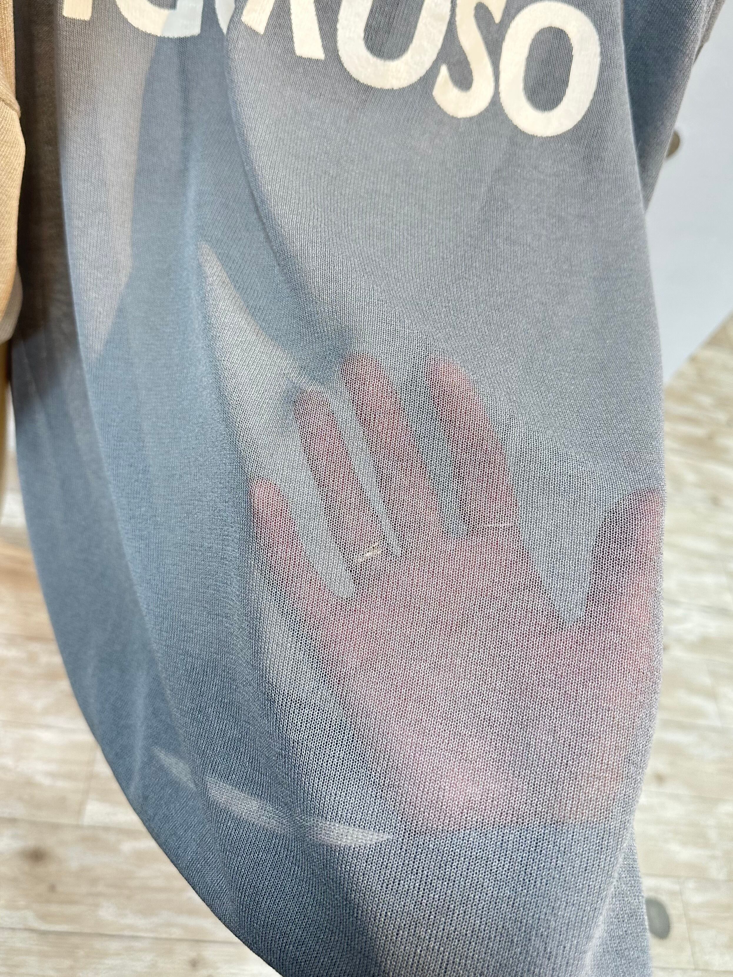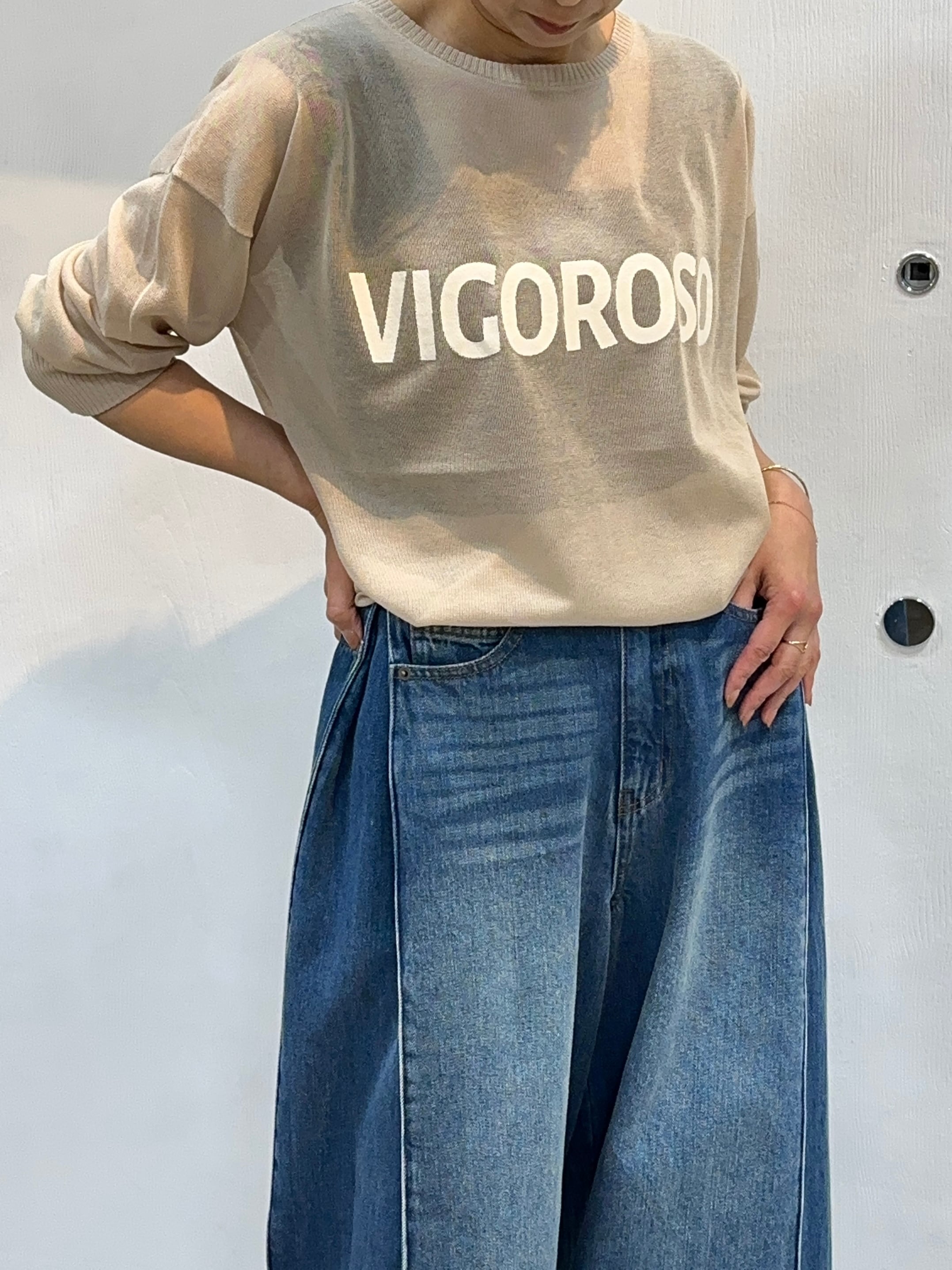 軽やかな透け感が魅力の、ロゴプリントシアーニット。
